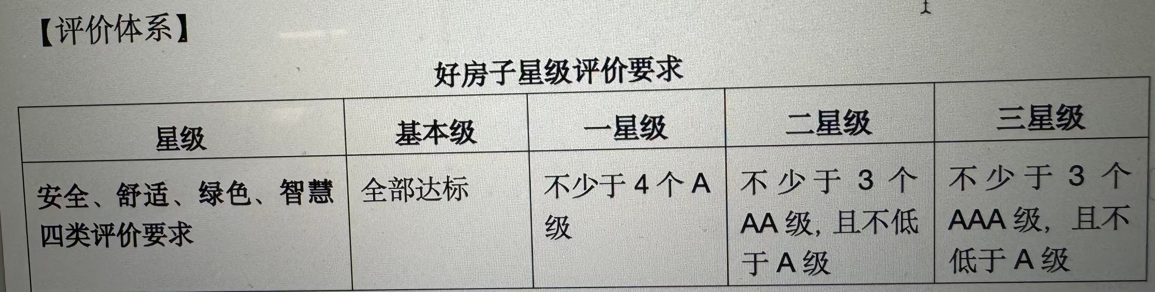 众所周知,酒店的星级评定是人们评价酒店档次和服务的最直观标准,未来,住宅也可以评星级了?近日,广州市住房和城乡建设局发布《广州市好房子评价标准(征求意见稿)》(下称《征求意见稿》),提出以“安全、舒适、绿色、智慧”四类评价指标,组成好房子等级评价指标体系,将好房子评价划分为基本级和一星级、二星级、三星级,共四个等级,其每一类评价划分为基本级和A级、AA级、AAA级,共四个等级。